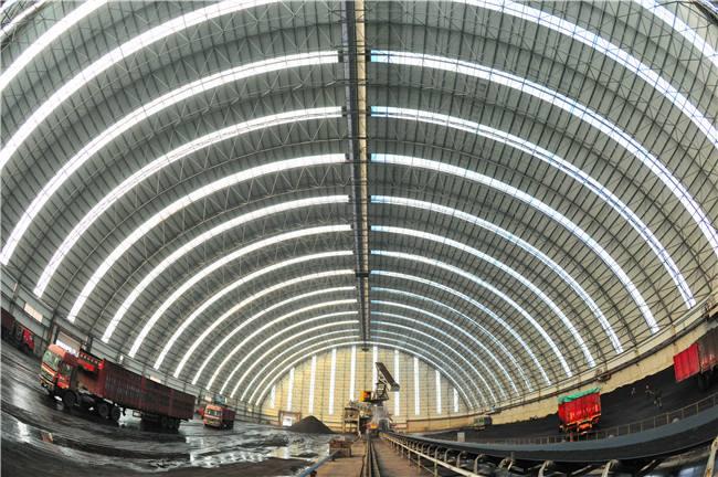 堆场料场封闭式主体结构为新型的钢新沂网架结构,维修结构为新沂钢结构新沂不锈钢板和纤维增强塑料灯具,其外形以新沂网架式和平板为主,连接柱新沂施工自由,设置喷雾自动喷水系统,从而可以实现棚内所有物料的覆盖,减少物料在运输过程中的损耗,起到防尘的作用,减少工厂关闭后的二氧化硫排放量,50mg/m3颗粒排放量小于10mg/m3,非常适合低能耗。低闭库自动感应反应对库存轮胎进行清洁,确保轮胎不受道路污染;封闭的储存区可从源头控制粉尘污染,控制无序排放。